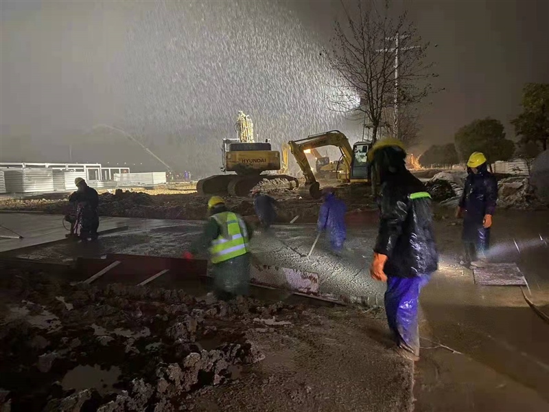 截止1月29日18:00,現(xiàn)場(chǎng)已完成準(zhǔn)備區(qū)所有混凝土澆筑,雨污水管道、室外水電管道施工完成,地坪及道路基本結(jié)束。自1月28日暴雪來襲,施工環(huán)境惡劣,一線人員不畏嚴(yán)寒,連夜雪中奮戰(zhàn),集團(tuán)公司黨員突擊隊(duì)、志愿服務(wù)隊(duì)出動(dòng)搬運(yùn)物資、修補(bǔ)設(shè)施等,以飽滿熱情和堅(jiān)決態(tài)度克服各種困難和障礙,充分展現(xiàn)了“國(guó)企加速度”。