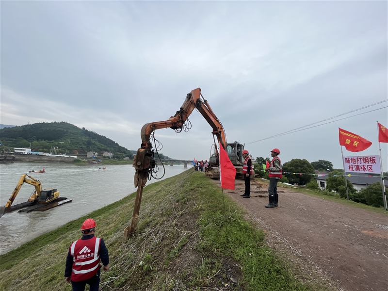 5月11日上午,根據(jù)市、區(qū)防指的統(tǒng)一部署,宣城市暨宣州區(qū)2023年防汛搶險實戰(zhàn)演練活動在朱橋鄉(xiāng)北山港口舉行,共27支抗洪搶險隊參與演練活動。演練內(nèi)容包括打樁、加子埂、反濾圍井、開溝導滲、水下?lián)岆U、水上編隊航行和人員搜救轉(zhuǎn)移演練。安徽鰲峰建設(shè)集團有限公司搶險隊共10人參加陸地鋼板樁演練。
